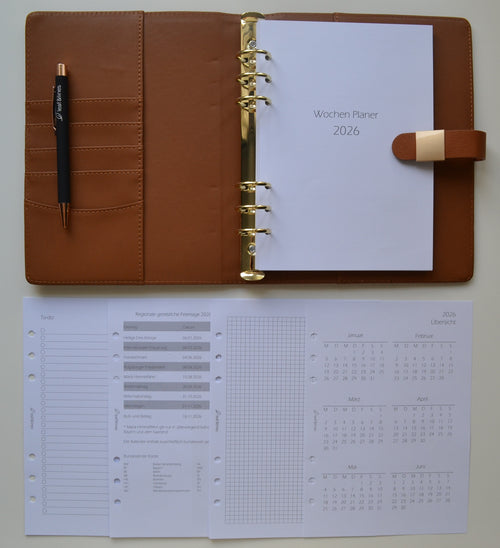 Minimalistisches Ringplaner Set Cognac